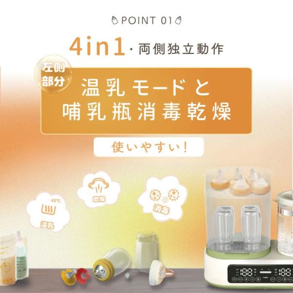 調乳ポット 1台8役 消毒 ボトル ウォーマー ミルクウォーマー 保温 除菌 大容量 哺乳瓶ウォーマー ミルク加熱 授乳用品 赤ちゃん用品 スチーム消毒 乾燥 離乳食