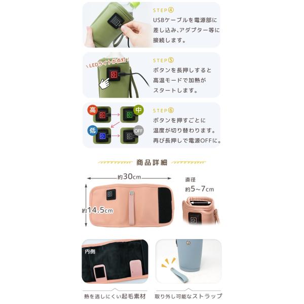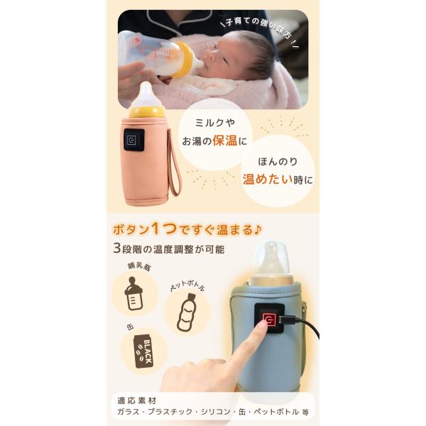 ミルクウォーマー 哺乳瓶ウォーマー ボトルウォーマー 哺乳瓶 保温 ケース USB充電 温度調整 哺乳瓶 ポーチ 温乳器 温め 哺乳びん 携帯 外出 缶 ポイント消化