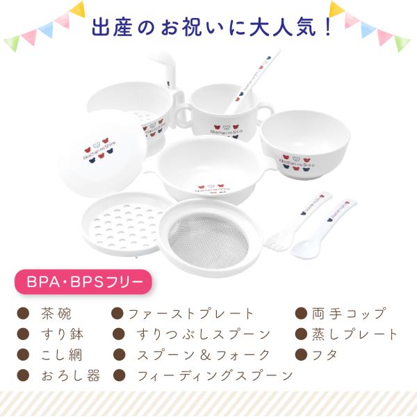 食器&マグセット 日本製 ベビー食器 離乳食 調理セット マグ スパウト トリコロール シンプル ベビーギフト 贈り物 …