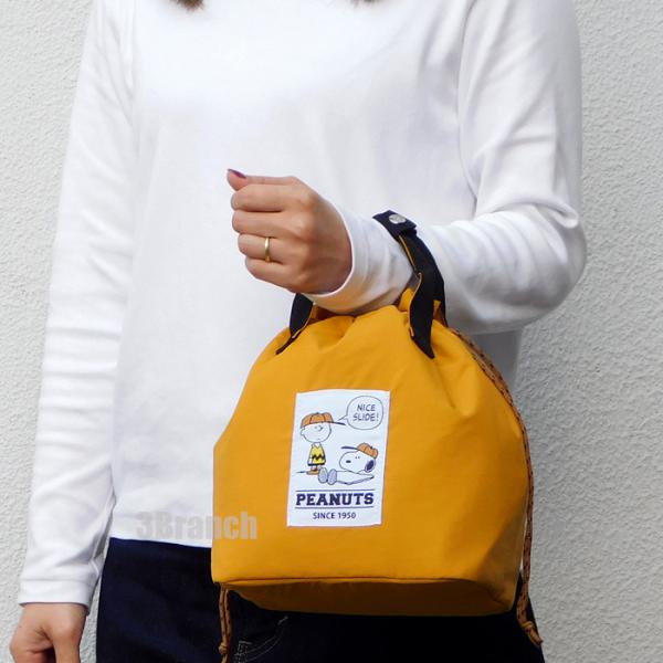 スヌーピー 巾着 保冷 保温 ランチバッグ 保冷バッグ お弁当袋 クーラートートバッグ エコバッグ メンズ レディース 保冷ポーチ マスタード