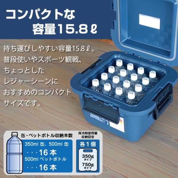 収納ボックス クーラーボックス 小型 部活 グランクール grancool #16 15.8L ブルーグレー ショルダーベルト付き ベルト付き 釣り