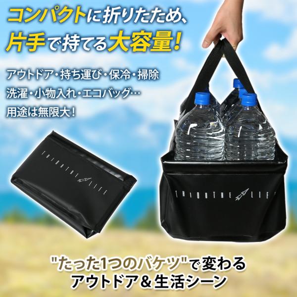 シアザライフ 折りたたみバケツ キャンプバケツ ジャグ フィールドラック 小物入れ 折り畳み 片手持ち コンパクト 四角 大容量 15L アウトドア 釣り 洗車 洗濯