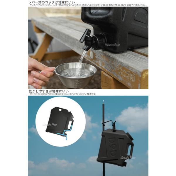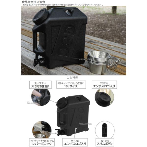 DOD ウォータータンク 水専用 10Lサイズ ジャグタンク レバー式コック BBQ バーベキュー ファミリーキャンプ アウトドア ジミニータンク WT3-863-BK ブラック