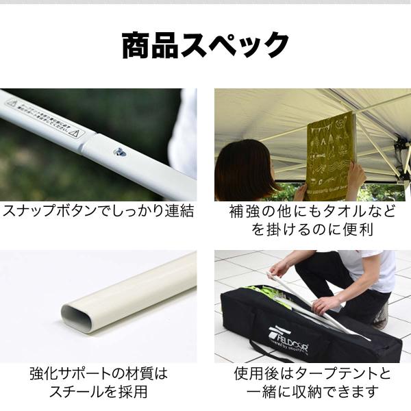 タープテント 専用 サイドフレーム強化サポート 4本セット 2.5m用 250 タープ テント FIELDOOR 1年保証 送料無料