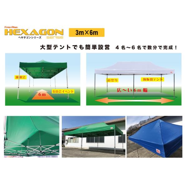 イベントテント ワンタッチテント 大型テント HEXAGON(ヘキサゴン)シリーズ 3m×6m アルミフレーム (六角40mm)