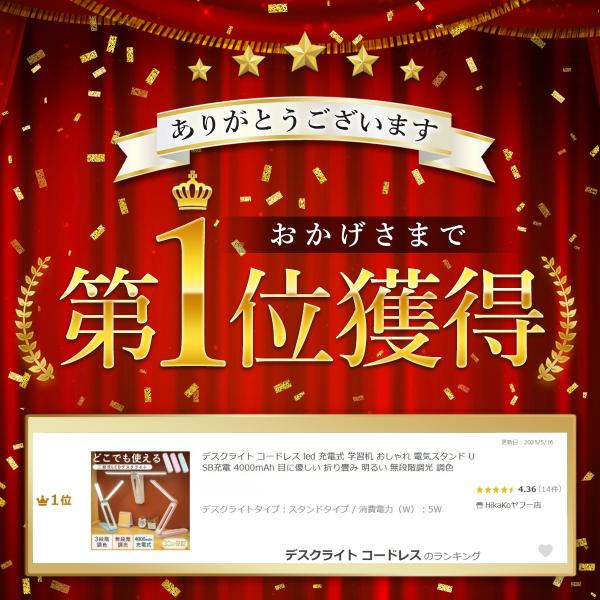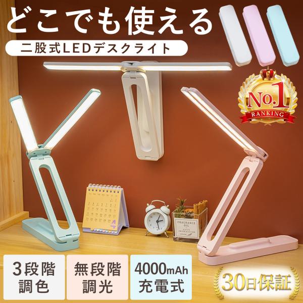 デスクライト 充電式 コードレス usb led 学習机 おしゃれ 電気スタンド USB充電 4000mAh 目に優しい 折り畳み 明るい 無段階調光 調色