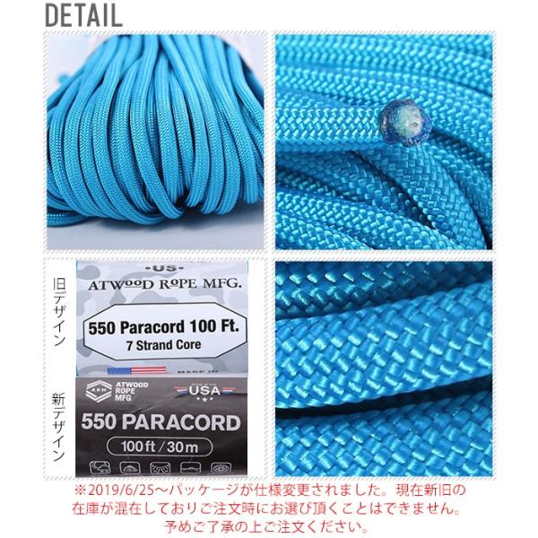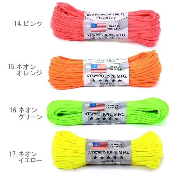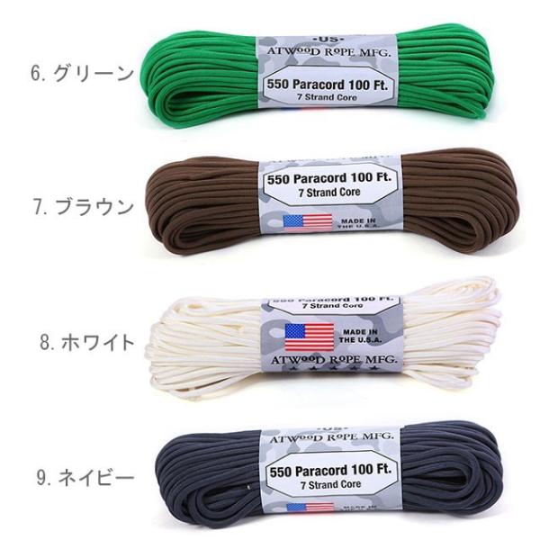 パラコード 550Lbs 30m アトウッド ロープ ATWOOD ROPE MFG. アウトドア 定番 アクセサリー 定番 耐久性 サバゲー paracord