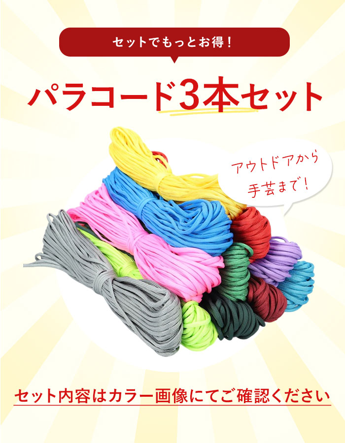 パラコード 4mm 30m 通販 3点セット パラシュートコード 洗濯紐 洗濯ひも ガイロープ ガイドロープ 紐 ひも テントロープ 手芸用品 アウトドア パラコード