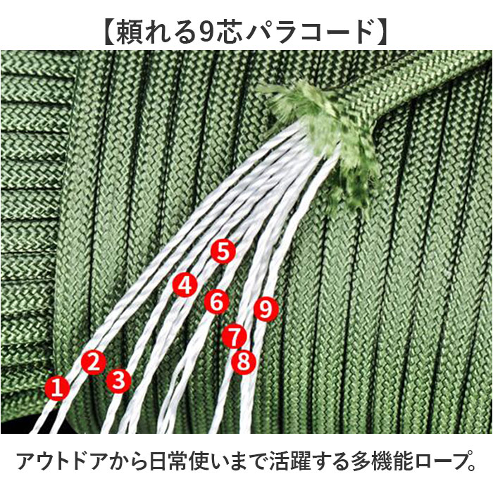 パラコード 4mm 31m 通販 9芯 パラシュートコード 洗濯紐 洗濯ひも ガイロープ ガイドロープ 紐 ひも 手芸用品 テントロープ アウトドア テント パラコード