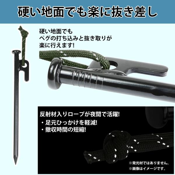RiveRock (リバロック) ペグハンマー スチールペグ 20本 セット 緑 収納袋 夜光ロープ 強靭 テント設営 タープ設営 ペグ