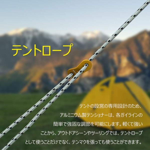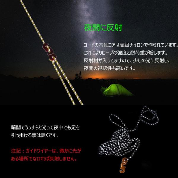 テントロープ 3mm 4個セット 4M ガイドロープ 自在金具 ロープ テント テントロープ 反射材入り パラコード テント タープ用ロープ パラシュートコード 夜光