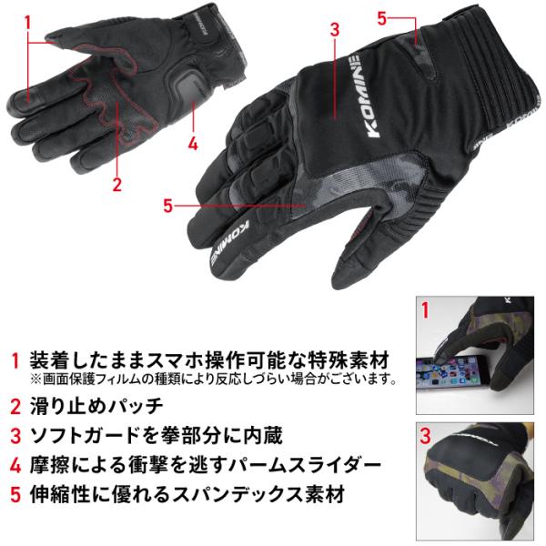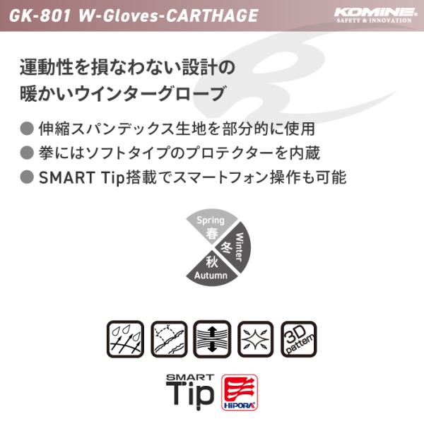 コミネ GK-801 ウインターグローブ-カルタゴ KOMINE 06-801 バイク グローブ 秋冬 スマホ対応 スポーティー
