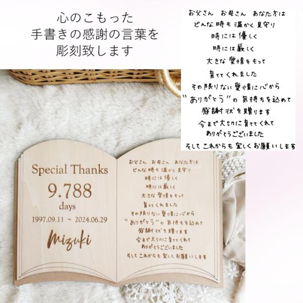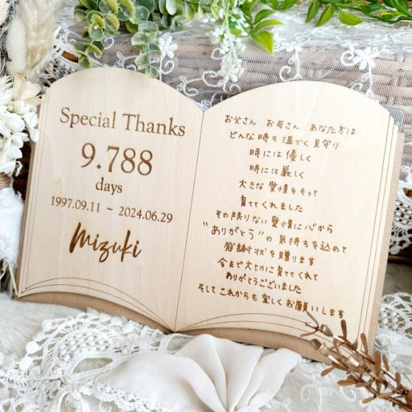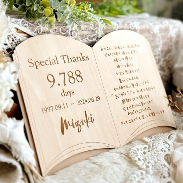 子育て感謝状 木製BOOK 両親贈呈 ブライダル 結婚式 感謝の気持ち 感謝状 両親 プレゼント ギフト 新郎 新婦 お父さん お母さん パパ ママ 本 洋書 ナチュラル