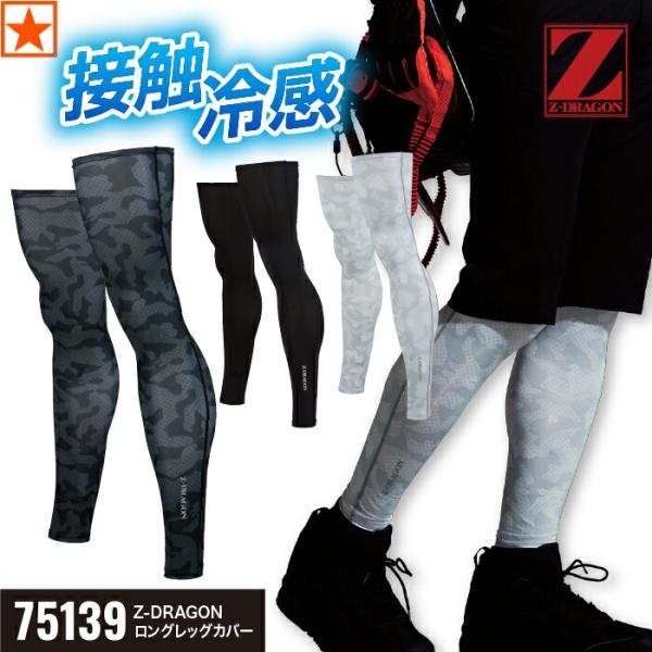 [ 75139 ロングレッグカバー Z-DRAGON 自重堂 ] M~LL Jichodo ジードラゴン 接触冷感 吸汗 速乾 ストレッチ 春 夏 コンプレッション 着圧 インナーウェア 涼しい