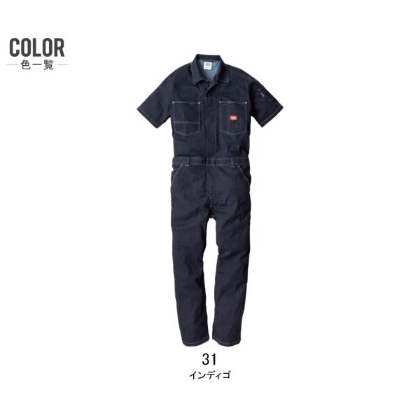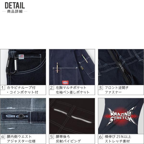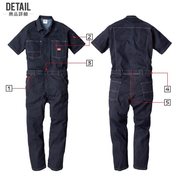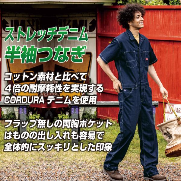 ツナギ メンズ Dickies ディッキーズ D-752 春夏 デニム ストレッチ 半袖