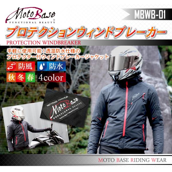 【在庫有】【送料無料】モトベース(MOTO BASE)秋春モデル 防風・防水 バイク用ジャケット プロテクション ウインドブレーカー ジャケット/MBWB-01