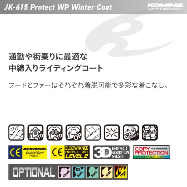 コミネ ジャケット JK-615 プロテクトウォータープルーフウインターコート KOMINE 07-615 バイク 防寒 CE規格パッド付