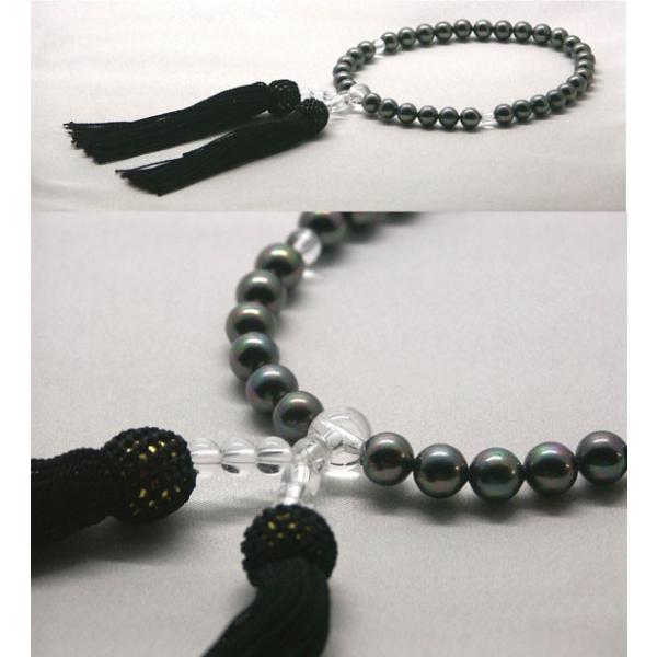 数珠 念珠 女性用 8ミリ ピーコック 黒真珠 【送料無料】 真珠 貝パール 収納袋付き 国産 水晶 最高級12回厚巻き 冠婚葬祭 葬式 通夜 フォーマル 葬儀 仏具