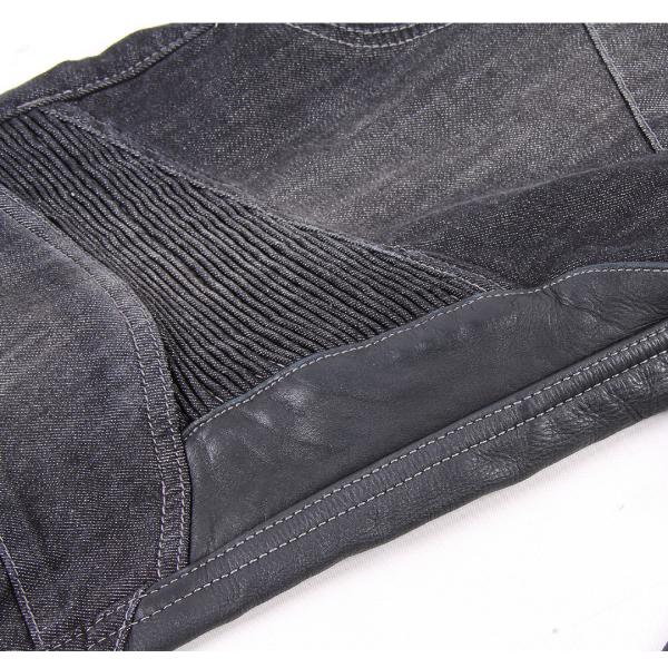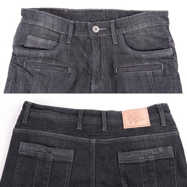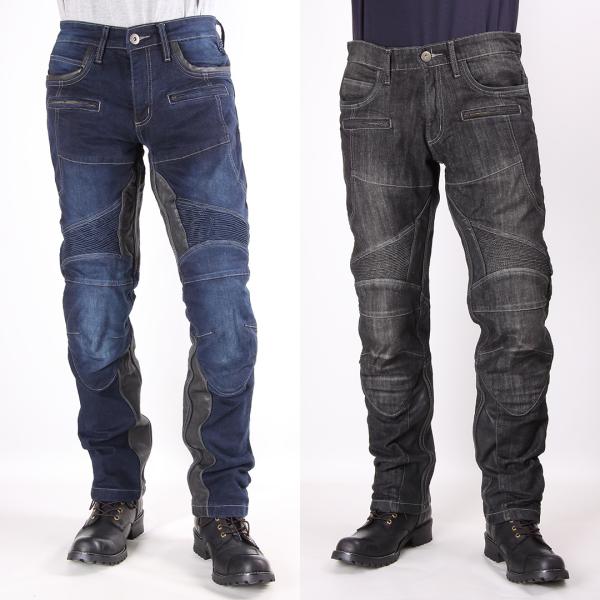バイク用パンツ デニム 本革ヒートガード付き ライディングパンツ プロテクター付 メンズ ネイビー/ブラック DP-27