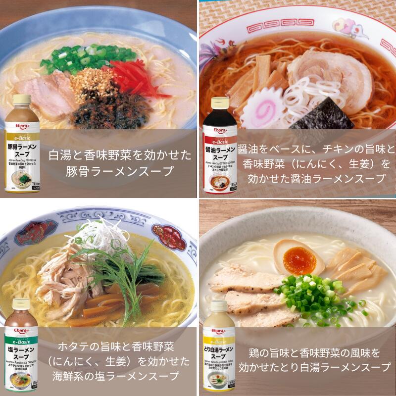 ラーメンスープ お試しセット e-Basic 500ml ×4本 エバラ 業務用 お買い得 セット品 まとめ買い スープのみ 塩 醤油 豚骨 とり白湯