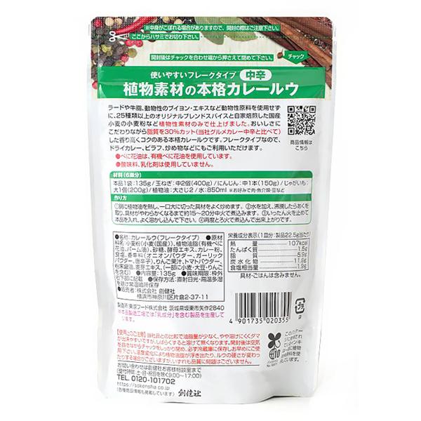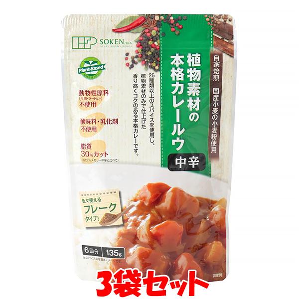 創健社 植物素材の本格カレー <中辛> フレーク カレールウ 135g(6皿分)×3個セット ゆうパケット送料無料(代引・包装不可)