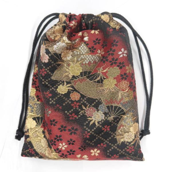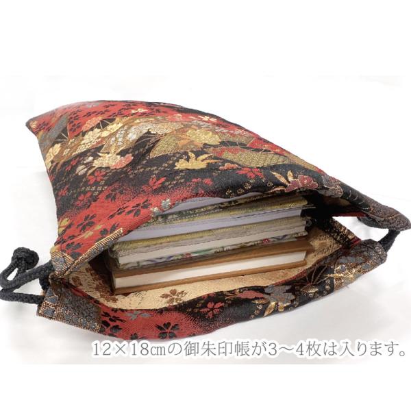 御朱印帳袋 【舞扇 黒】御朱印帳入れ 19×26cm 小物入れ 御朱印帳 袋 巾着 巾着袋 日本製 金襴 京都 金らん 西陣織