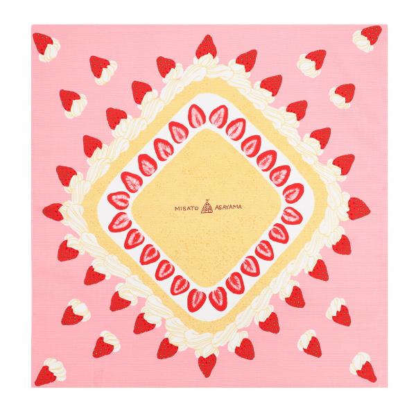 風呂敷 日本製 50cm幅 中巾 ケーキ 果物 フルーツ ピンク いちご ショートケーキ 浅山美里 ASAYAMAMISATO 和 綿100% お洒落 No.26-0077