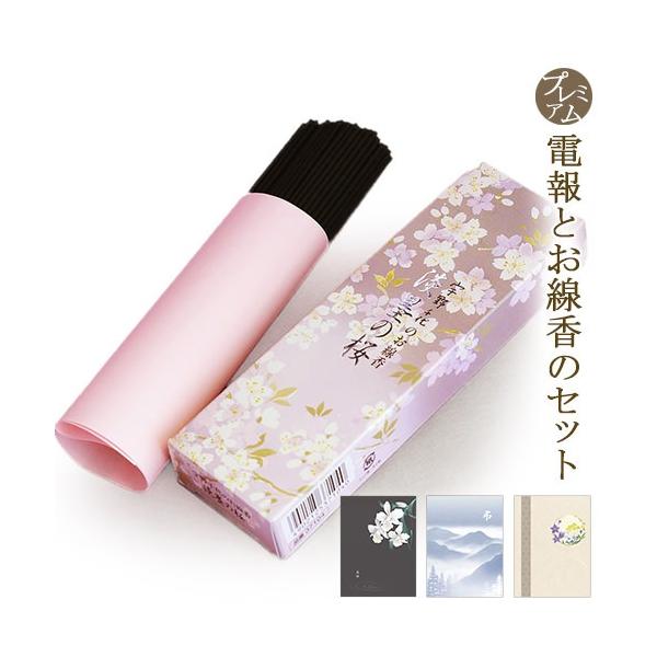 線香 「宇野千代のお線香 淡墨の桜」 プレミアムカード電報セット 弔電 葬儀 お悔やみ お供え 日本香堂 進物用 ギフト 法事 お彼岸 春彼岸 お見舞い