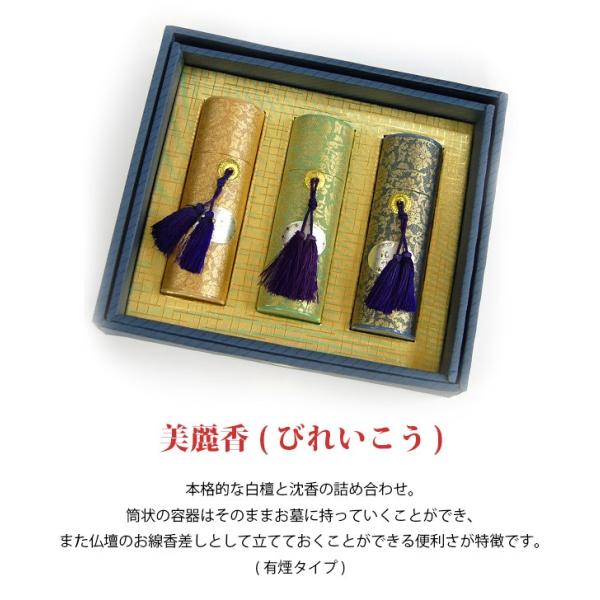 線香 ギフト おしゃれ のし お供え 喪中見舞い 贈る お線香 贈答用 御線香 進物用 進物線香 有煙「進物 美麗香 3種セット 化粧箱入」ときわ木本舗 (2206000810)