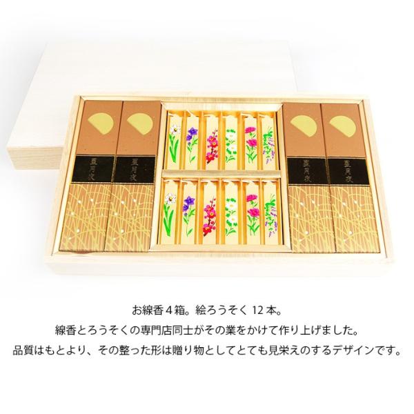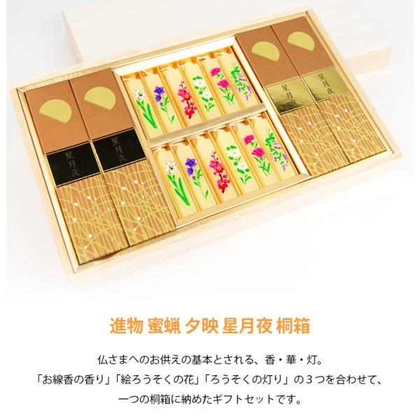 ろうそく ギフト おしゃれ キャンドル 絵ろうそく のし お供え 喪中見舞い 贈る 進物用 絵ローソク「進物 蜜蝋 夕映星月夜 線香セット 桐箱入り」(2206001827)