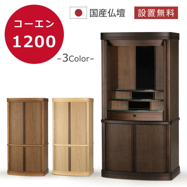 仏壇 国産 モダン 日本製 国産 家具調 床置き 巻戸 お仏壇 リビング モダン仏壇 本体のみ コーエン1200 台付き 上下セット 納骨