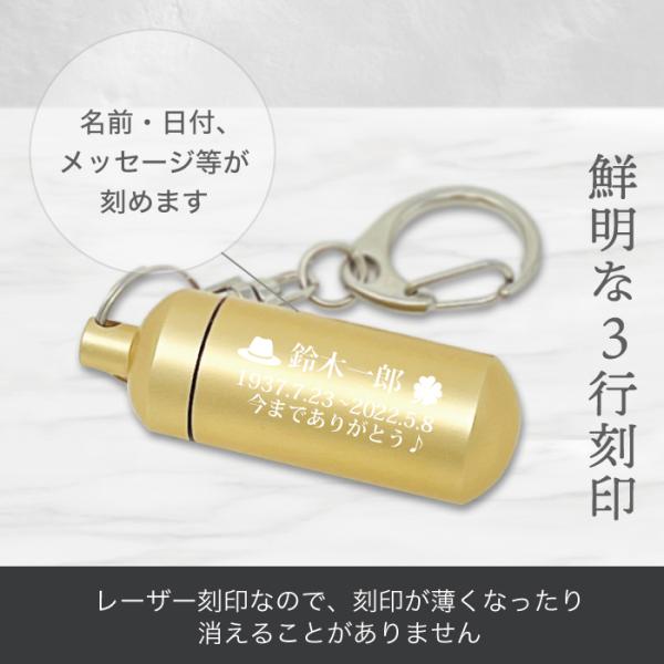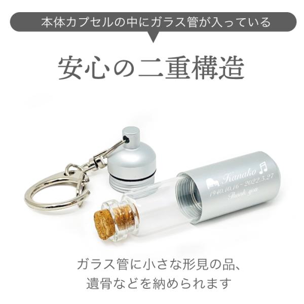 故人様向け ガラス管付 遺骨キーホルダー 人間 3行 刻印 Mサイズ 遺骨カプセル 人 ケース 遺骨 アクセサリー 二重 構造 遺骨入れ 男性 遺骨 キーホルダー 分骨