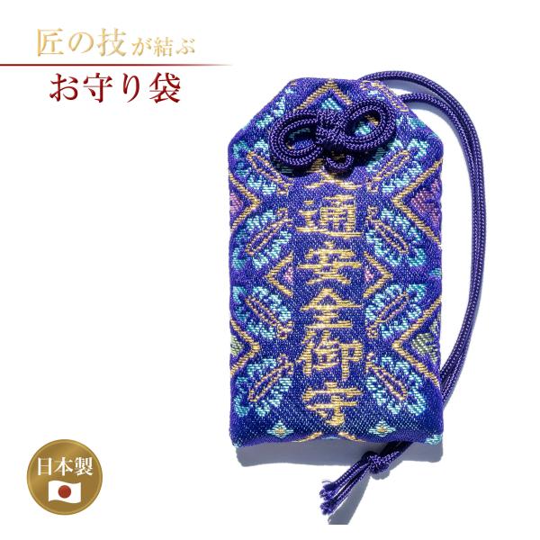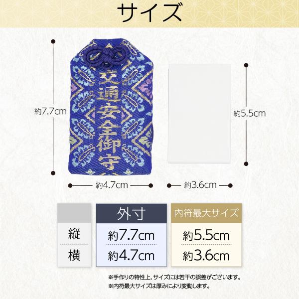 交通安全お守り袋 小葵柄 横4.7cm×縦7.7cm 紫 御守袋 お守袋 おまもり袋 おまもり入れ 国産 日本製 神具 仏具 お寺 神社 多用途 和柄