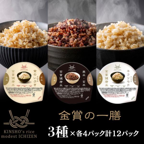 ご飯パック 金賞健康米 黒米 玄米 もち麦 金のいぶき キラリモチ 3種各4パック パックごはん 120g 12食 保存食 ダイエット 雑穀米 送料無料 金賞米 <2977011>