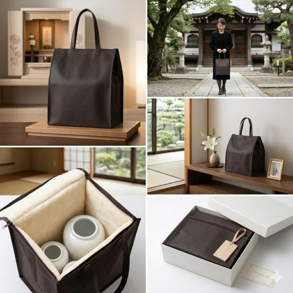 遺骨用手提げ袋 遺骨バッグ 納骨袋 骨壺収納バッグ 6寸 7寸対応 大型 黒 軽量 運ぶ 持ち運び 法要 墓参り 供養用 軽量
