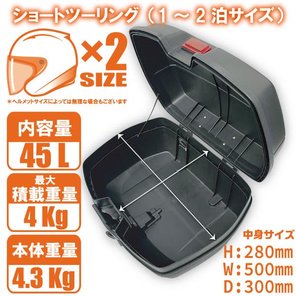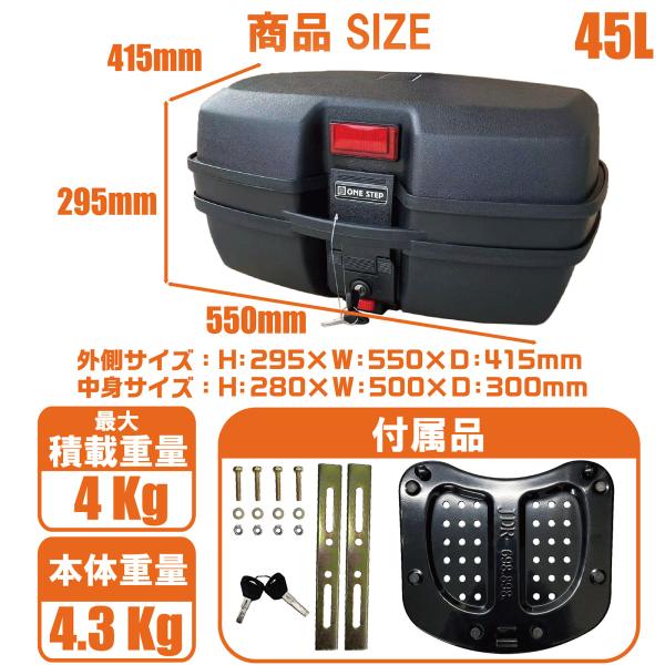 リアボックス バイク 45L 背もたれ パット バイク用 バイクリアボックス小型 トップケース バイク ABS 軽量