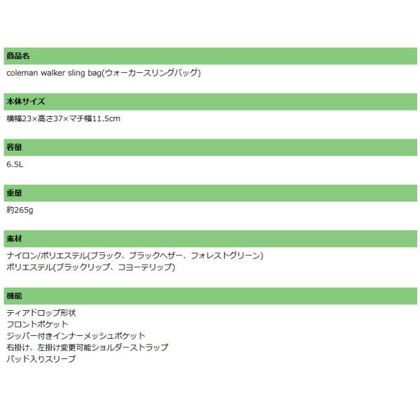 ボディバッグ コールマン ウォーカースリングバッグ 容量6.5L ワンショルダーバッグ メンズ レディース