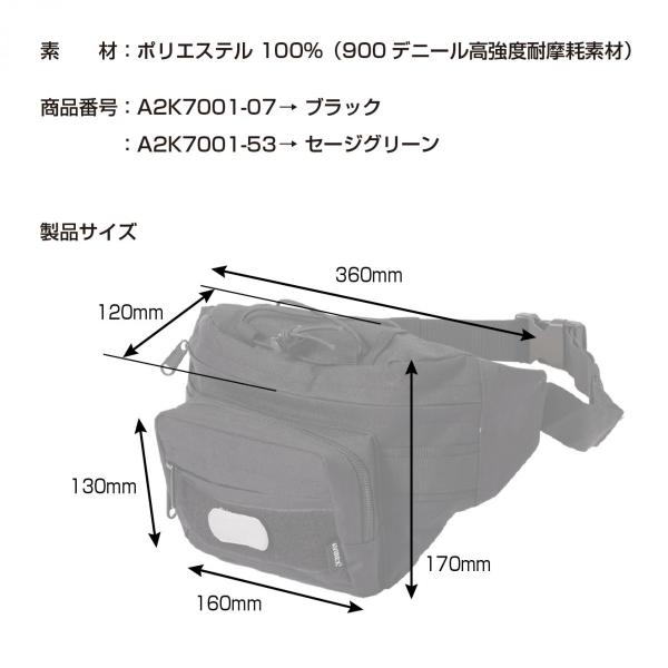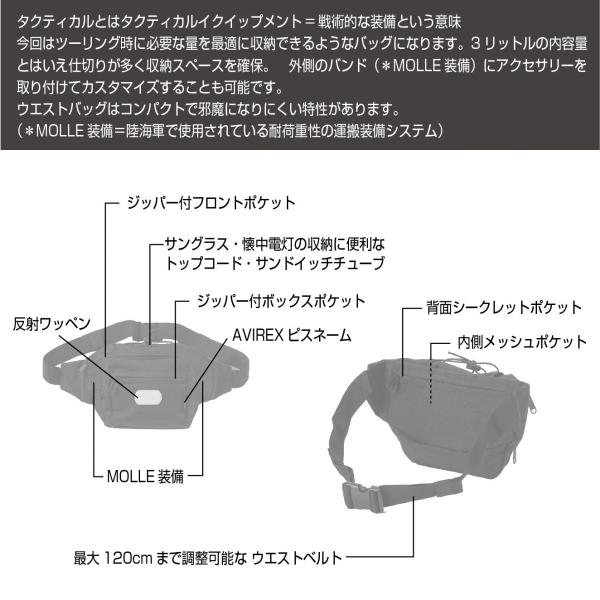 A2K-7001 AVIREX TACTICAL WAIST BAG アビレックス タクティカルウエストバッグ(3リットル) ライディング バイク ツーリング 小物収納 MOLLE装備 カスタマイズ