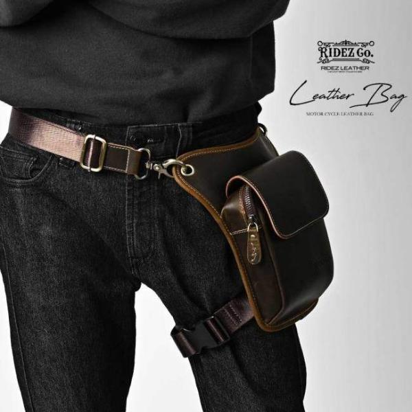 RIDEZ ライズ LEATHER LEG BAG バイク用 レッグバッグ カラー:D.BROWN レッグバッグ・ホルスターバッグ バッグ