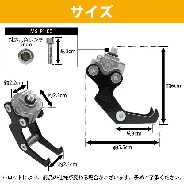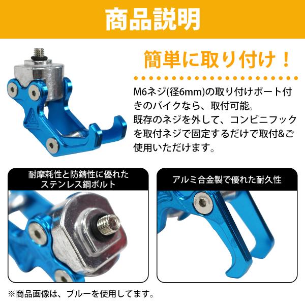 汎用 アルミ コンビニ フック バイク 用 M6ボルト 原付 カブ ズーマー ディオ エイプ ジョグ シグナス ヘルメット 全7色 黒/青/金/緑/紫/銀/赤