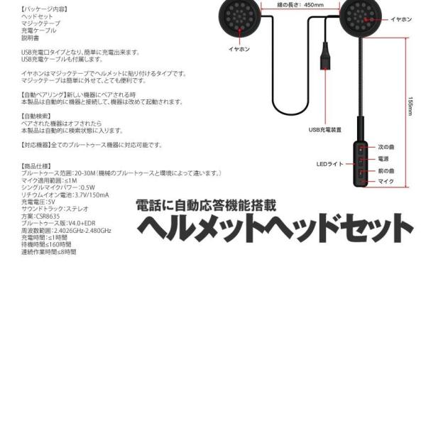 バイク用 ヘッドセット ワイヤレス ヘッドフォン ブルートゥース Bluretooth ヘルメット ハンズフリー ステレオ スピーカー 電話 通話可能 8時間連続 BKPPHONE