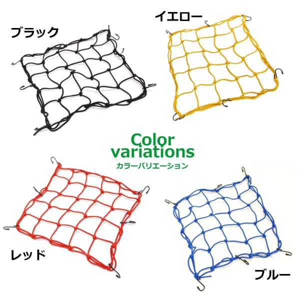 ツーリングネット フック付き バイクネット 自転車ネット カーゴネット 荷物固定 伸縮 40x40cm ラゲッジネット ゴムネット 4カラー