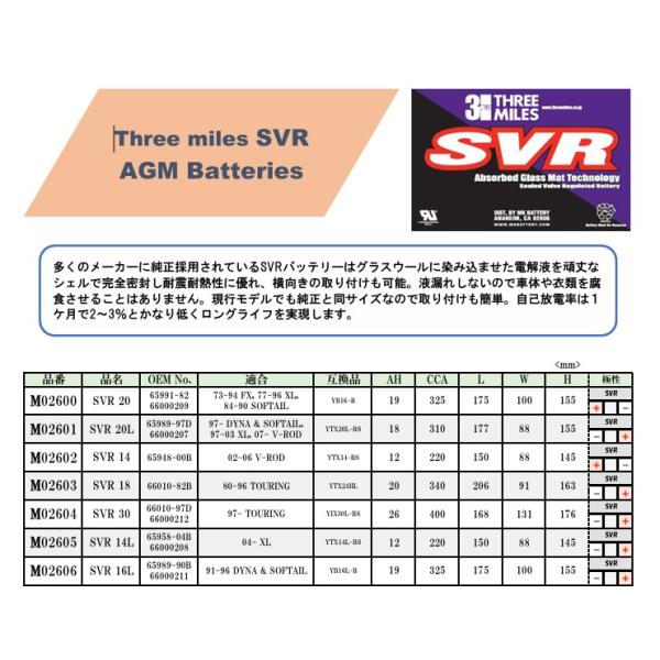 SVR20 AGM BATTERY バッテリー スリーマイルズ