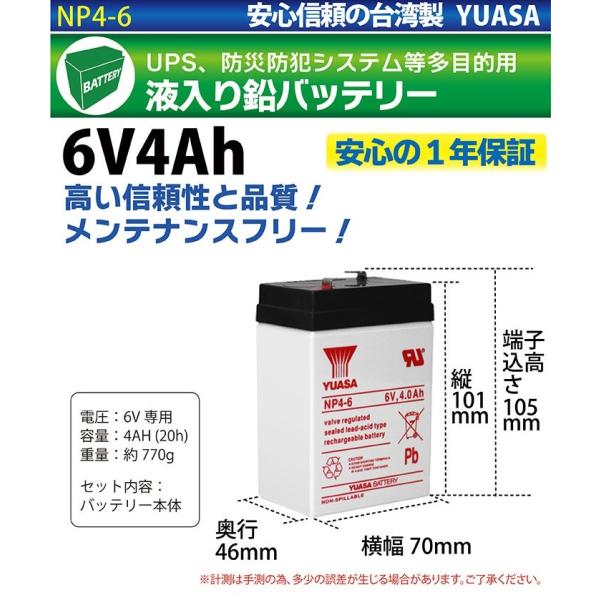台湾 YUASA ユアサ 6V4Ah NP4-6 UPS バッテリー 無停電電源装置 防災 防犯システム 非常用照明設備 非常通報 システム機器 消防設備