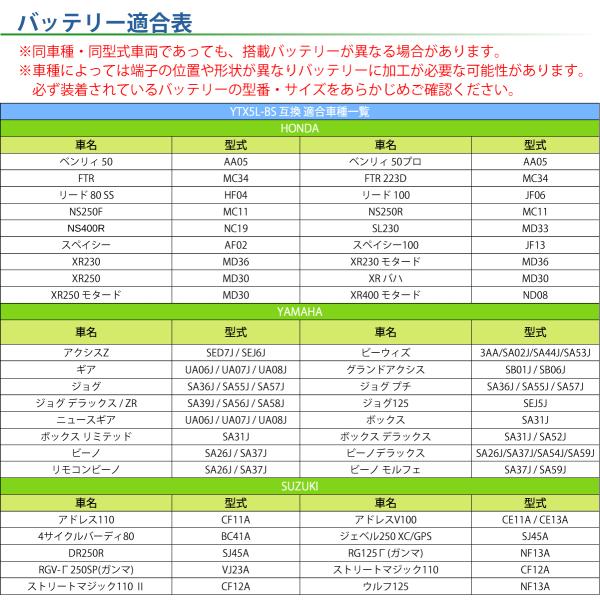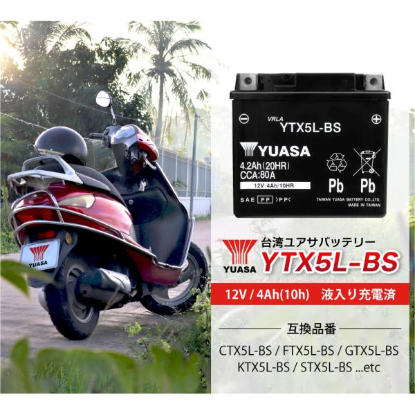 バイク バッテリー 台湾 ユアサ YTX5L-BS 液入り 充電済み ( 互換 GTX5L-BS CTX5L-BS FTX5L-BS ) YUASA ビーノ スペイシー リード ライブディオST NSR125 XR250