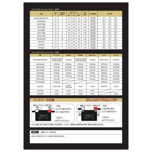 AQUA DREAM アクアドリーム GOLD SERIES バッテリー 液入り充電済【ADTX4L-BSII/ADTZ5SII】 HONDA ホンダ KAWASAKI カワサキ SUZUKI スズキ YAMAHA ヤマハ