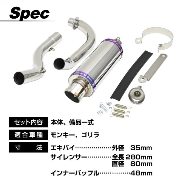 ホンダ モンキー ゴリラ マフラー ストレート オールステンレス ダウンマフラー フルエキゾースト サイレンサー インナーバッフル