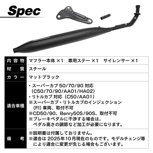 スーパーカブ 対応 C50 C70 C90 リトルカブ 対応 モナカマフラー マットブラック フルエキゾーストマフラー AA01 HA02 外装 カスタム ドレスアップ パーツ