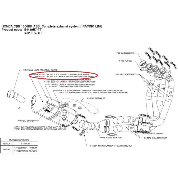 AKRAPOVIC アクラポビッチ 【リペアパーツ】V-EC35 end cap set for carbon fiber outer sleeve muffler CBR1000RR HONDA ホンダ マフラーエンドキャップ