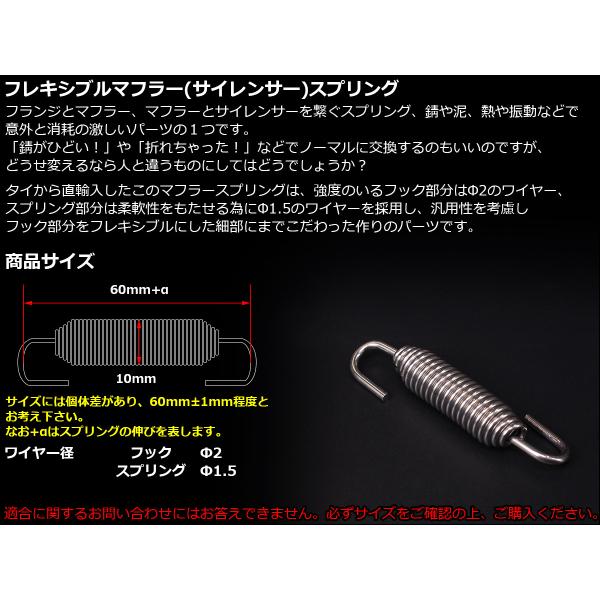 60mm マフラー サイレンサー ジョイント スプリング フレキシブル フック シルバー TE0038